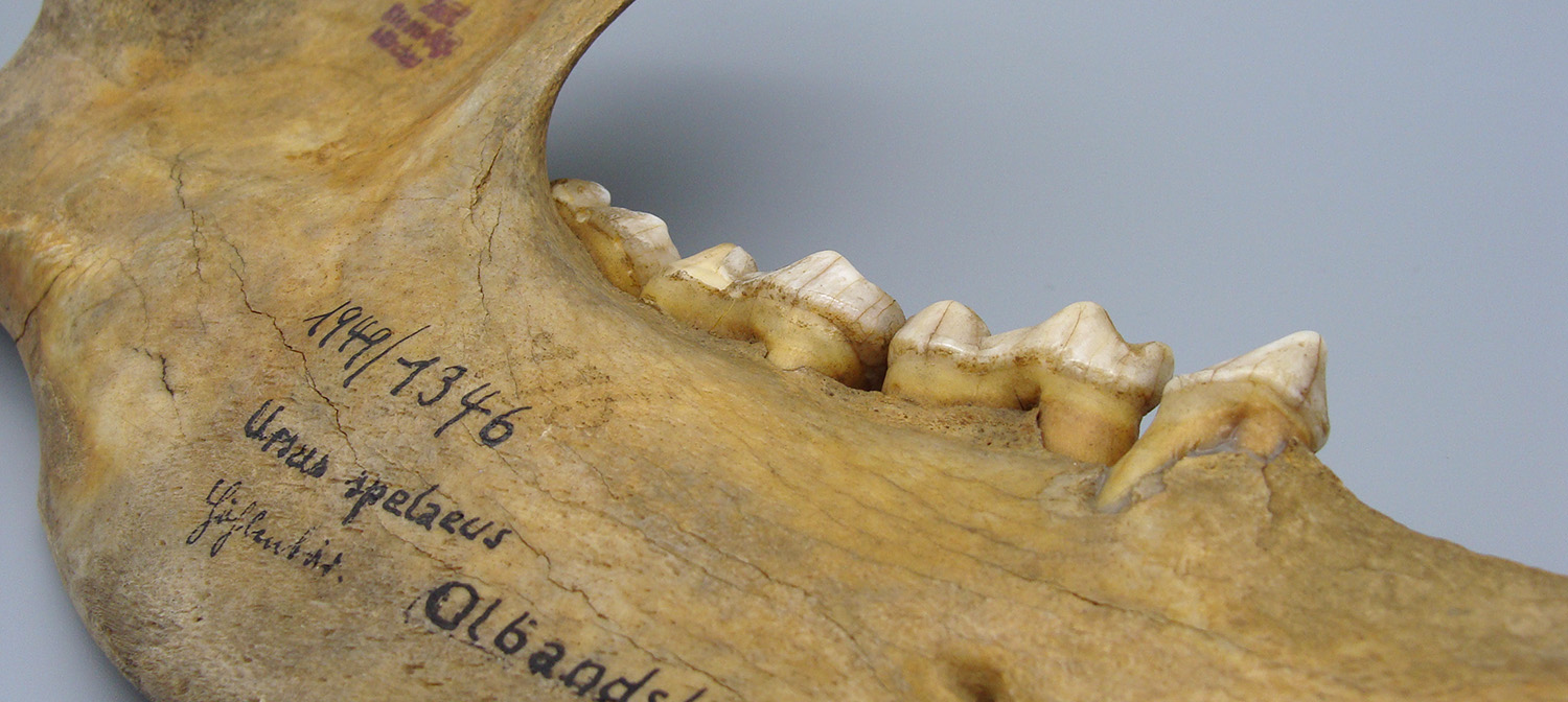 Bei heutigen Bären ist das anders, ihre Zahnentwicklung folgt dem ICM Muster nicht. Bei fast allen heutigen Bären – unabhängig von ihrer Ernährungsweise – ist der zweite Backenzahn der größte aller Backenzähne. Der Frage nach dem Ursprung dieses Phänomens gingen SNSB Zoologin PD Dr. Anneke van Heteren und ihre Doktorandin Stefanie Luft nach. Sie suchten nach Hinweisen in der Evolutionsgeschichte der Bären und fanden tatsächlich zwei Brüche in der Bärenhistorie, ab wann und bei welchen Bärenarten die Zahnentwicklung vom allgemeinen Muster abweicht. Die Forscherinnen verglichen für ihre Arbeit die Kiefer von fossilen und modernen Bären mit dem ICM Modell – bis weit zurück in der Bärengeschichte, der älteste untersuchte Kiefer stammt aus der Zeit des Miozäns und ist mindestens 13 Millionen Jahre alt. Den ersten fundamentalen Einschnitt in der Zahnentwicklung identifizierten die Zoologinnen vor rund 3,6 Millionen Jahren. Bei Ursus minimus – wohl der gemeinsame Vorfahr der meisten heutigen Bären – vergrößerte sich der zweite Backenzahn unverhältnismäßig. Den zweiten Bruch gab es etwas später, vor etwa 1,25 bis 0,7 Millionen Jahren beim frühen Höhlenbären Ursus deningeri. Bei ihm wuchs der dritte Backenzahn größer als dem Modell zufolge erwartet.