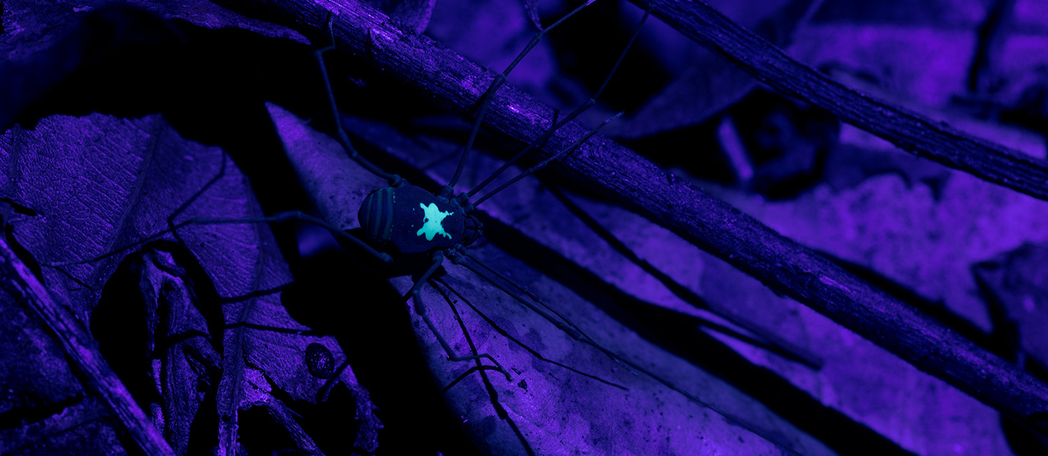 Im Tieflandregenwald der peruanischen Amazonasregion entdeckten Zoologen der Staatlichen Naturwissenschaftlichen Sammlungen Bayerns (SNSB) bei nächtlichen Exkursionen mit UV-Lampen fünf Weberknechtarten aus derselben Familie, die zeitgleich denselben Lebensraum nutzen. Obwohl sich die Tiere in Größe und Färbung stark ähneln, unterscheiden sie sich eindeutig in Form und Größe eines hellen Musters auf dem Rücken. Dieses Merkmal ist innerhalb jeder Art konstant und unterscheidet sich deutlich zwischen den Arten. Unter ultraviolettem Licht zeigte sich, dass dieses Rückenmuster intensiv blau-grün leuchtet. Damit können sich die Tiere selbst bei sehr schwacher Beleuchtung – zum Beispiel bei Mondlicht und in der Dämmerung – vermutlich noch gut erkennen, ein entscheidender Vorteil für dämmerungs- und nachtaktive Arten.